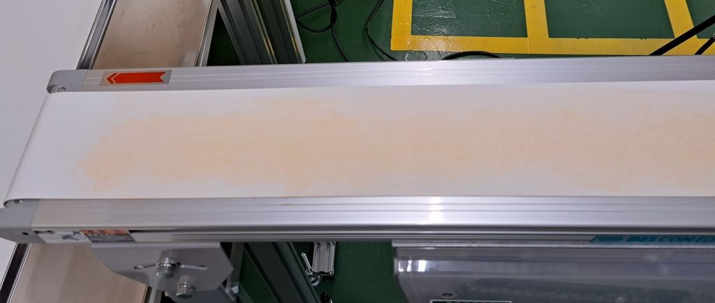 ベルトコンベヤを使用していると実際には次のような汚れが発生している可能性があり、拭き清掃だけの場合、清掃作業に時間がかかってしまいます。
