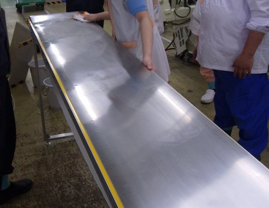拭き清掃だけのコンベヤほど、ステンレスベルトの価値が発揮されるのです。